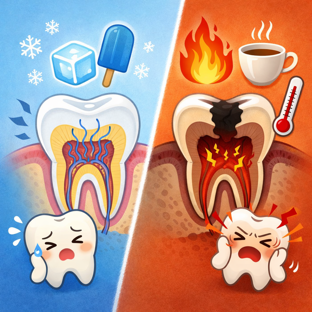 - 深いむし歯 → 神経が炎症を起こし、熱が痛い